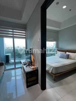 Dijual Apartemen Puri mansion -type 1 bedroom. -luas 37m2. -lantai 7(view pool) -kitchen set with build in washing machine. -dining n sitting area with solid teakwood furniture. -queen size bedroom furniturenya jati n masih baru semua. harga 900jt nego