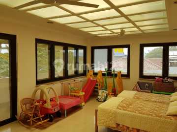 Ada taman yang luas, parkir basement 35 mobil ada kolam ikan ada main house dan guest house dengan connecting dekat akses tol
