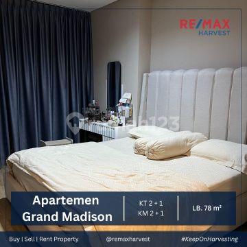 DIJUAL/DISEWA !! APARTEMEN GRAND MADISON Jakarta Barat LB : 78 M² Lantai Sedang KT : 2 + 1 KM : 2 + 1 Full Furnished Lokasi Sangat Strategis (RH.C.M) Harga Jual : 2.7 Miliar Harga Sewa : 120 Juta/Tahun Vinacia RE/MAX HARVEST 08129039xxxx