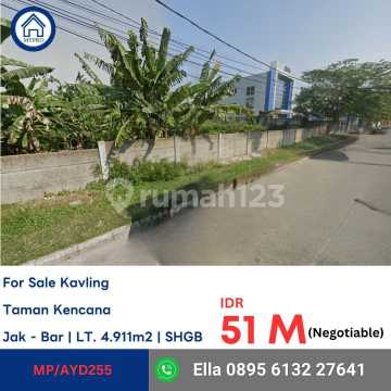 Tanah Kosong, di Komplek Perumahan Taman Kencana Jalan Kaliandra Raya, Lingkungan Nyaman Bersih Asri Cengkareng Barat, Jakarta Barat, Lokasi strategis dan bebas banjir. (2 SHGB) 3.016 dan 1.895 m2 Total Luas Tanah 4.911 m2 *Harga 51 M (Negotiable)* Wa Ella 089561xxxxxxx _MP/AYD 255_