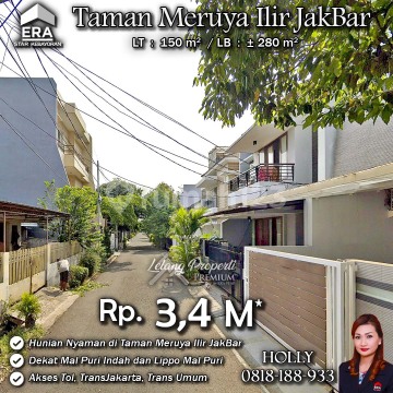 INFO LISTING - L06 RUMAH MINIMALIS MODERN NYAMAN STRATEGIS TAMAN MERUYA ILIR KEMBANGAN JAKBAR Alamat: Perum Taman Meruya Ilir Jl. Berlian Kel. Meruya Utara Kec. Kembangan JakBar Detail Properti: - Luas Tanah : 150 m² - Luas Bangunan : ± 280 m² Keunggulan Lokasi: - Lokasi Strategis dan Nyaman Harga: Rp. 3,46 M (CASH ONLY) Harga SUDAH Termasuk Pengosongan dan Balik Nama (Harga di atas belum termasuk BPHTB 5%, biaya lelang 2%, Pajak Pemerintah 1%, dan PBB jika ada) **Kenapa Memilih Kami?** Dengan pengalaman 12 tahun di bidang lelang, kami menyediakan solusi satu atap untuk semua transaksi properti Anda. Proses yang jelas dan bersih sehingga Anda bisa tenang hingga serah terima. Hubungi Kami untuk Info Lebih Lanjut: - Holly: 081818xxxx - Ferry: 0816116xxxxLelangProperti #PropertiIndonesia #InvestasiProperti #PropertyInvestment #RumahDijual #AgentProperti #JakartaRealEstate #JualBeliProperti #EraIndonesia #AgenPropertiTerpercaya #Investasi #RealEstateAuction #RumahMewah #RumahdijualDurenSawit #Rumahasri #Rumahminimalis #MalPuriIndah #Meruya #Kembangan #MeruyaIlir #JakartaBarat #LippoMalPuri
