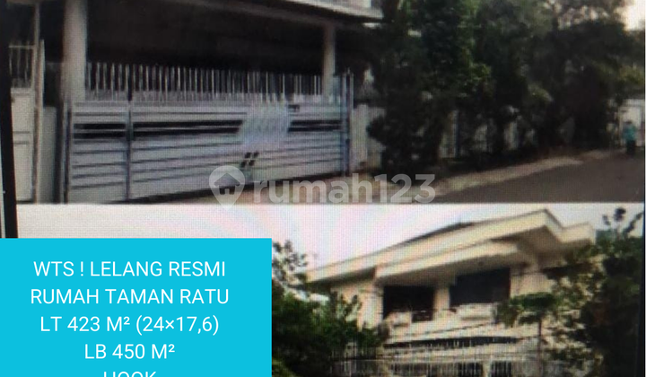 WTS ! LELANG RESMI Rumah Taman Ratu LT 423 m² (24×17,6) LB 450 m² Hook 2 Lantai 2 SHM Harga 7,9 M nego More Info : 0812xxxxxxxx Felli Cuan MR Realty Pluit
