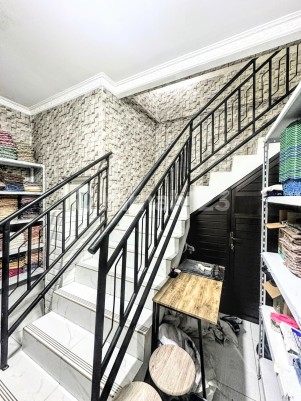 LT. 93m2 LB. 250m2 KT. 4 + 1 1 Kantor Kecil 1 Gudang Bawah Tangga KM. 3 (1 Kamar Mandi Dalam) + 1 Air PAM Listrik 7700 Watt SHM Hadap Timur Semi Furnished Carport 3 Mobil Row Jalan 2 Mobil Harga 6,9M Nego