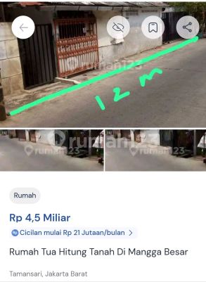 Rumah 1 lantai di Tamansari, Jakarta Barat. Dijual rumah di wilayah yang tenang dengan pemandangan Lokasi di Pusat Kota. Properti 1 lantai ini berada di lingkungan yang mudah dijangkau. Rinciannya adalah sebagai berikut: - Kamar Tidur: 5 - Kamar Mandi: 4 - Surat AJB notaris - Kondisi Perabotan: Unfurnished Tidak hanya itu, properti ini layak untuk dimiliki karena: - Dekat Pusat Perbelanjaan. - Lokasi di Pusat Kota. - Lingkungan Tenang dan Damai. - Properti Bisa Nego. - Akses Jalan Muat 2 Mobil. Keberadaan rumah ini terjangkau, hanya selangkah menuju berbagai fasilitas utama dan menarik. Hanya Rp. 4,5 Milyar, anda dapat langsung dapatkan rumah terbaik di daerah Tamansari ini.