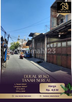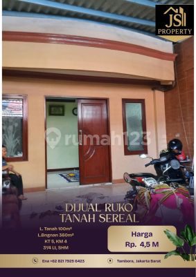 DIJUAL RUKO 3¹/4 Lantai di Tanah Sereal Tambora - Jakarta Barat Luas Tanah 100 m² Luas Bangunan 360 m² 3¹/4 Lantai Kamar Tidur 5 Kamar Mandi 4 UnFurnish Listrik 4.400Watt Air Pam Sertifikat SHM Harga 4,5 M Nego