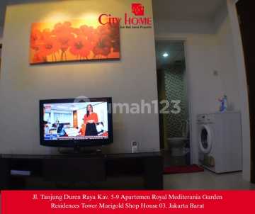 Apartemen Mediterania Garden Residences 2 - Tanjung Duren, Jakarta Barat Type : 2 bedroom & 1 bathroom Ukuran : 42 sqm Kondisi : Furnished Facilitas: Swimming Pool, Fitness, Jacuzzi, Table tennis, Commercial area, Minimart 24 jam, Children playground, Laundry, Dry cleaning, Jogging track, Multi function room Additional Info: -Lokasi strategis terletak di CBD S parman, jakarta barat -HANYA 5 menit ke toll dalam kota maupun toll bandara -diapit banyak mall ( mall Central park, Mall Taman Anggrek, Mall Citraland ) -dekat ke kampus2 + sekolah ( Universitas Tarumanegara, Universitas Trisakti, Universitas Binus, Ukrida, Universitas Esa unggul, Smuk 1 BPK Penabur , Bina bangsa School ) -Ada Halte bus way di depan mall central park, memudahkan transportasi bagi yang tidak mau bawa kendaraan. Harga Sewa / Jual : Rp.60.000.000,- (Nego) More Info : Putri 08565555xxxx CityHome - Royal Mediterania Garden Residences Tower Marigold ShopHouse 03 Jl. Tanjung Duren Raya, KAV. 5-9, Jakarta Barat AP-PU-M2-S-05