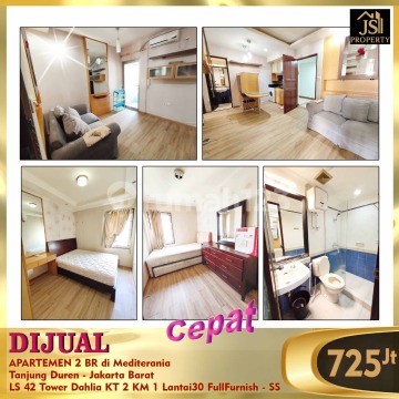 DIJUAL CEPAT APARTEMEN 2 BR Mediterania - Tanjung Duren - Jakarta Barat Luas Bangunan 42 m² Tower Dahlia Lantai 30 Kamar Tidur 2 Kamar Mandi 1 Full Furnish : Ya View kolam renang Hal yang Menarik : Bebas Banjir Dekat Pusat Kuliner 15 menit Central Park Mall 15 menit Taman Anggrek Mall 15 menit Universitas Trisakti 15 menit Universitas Tarumanegara Harga 690Jt Nego