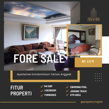 Apartemen Kondominium Taman Anggrek 3BR - Sale Type: 3 Br Size: 146 Sqm Sell Price: Rp. 2,5M Condition: furnished Facilities: * Jogging Track * lapangan tenis * lapangan basket * Swimming Pool Near to Mall: * Taman Anggrek Mall * Central Park Mall * Neo Soho Mall * Citraland Mall Near to School/Universities: * SMAK 1 BPK Penabur * Podomoro University * UKRIDA University * UNTAR University * Trisakti University * Binus University * etc