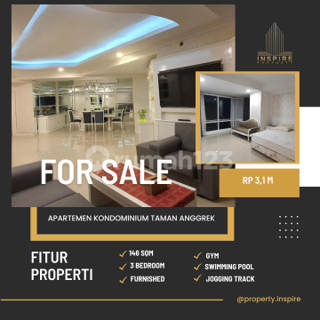 Apartemen Kondominium Taman Anggrek 3BR - Sale Type: 3 Br Size: 146 Sqm Sell Price: Rp. 3,1 M Condition: furnished Facilities: * Jogging Track * lapangan tenis * lapangan basket * Swimming Pool Near to Mall: * Taman Anggrek Mall * Central Park Mall * Neo Soho Mall * Citraland Mall Near to School/Universities: * SMAK 1 BPK Penabur * Podomoro University * UKRIDA University * UNTAR University * Trisakti University * Binus University * etc