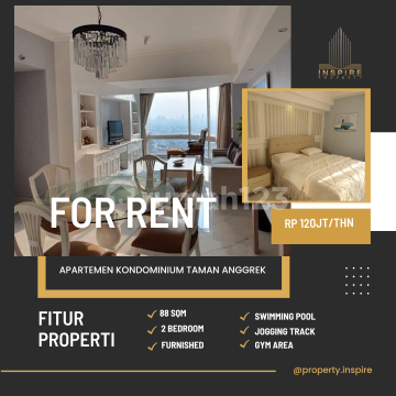 Apartemen Kondominium Taman Anggrek 2BR - Rent Type: 2Br Size: 88 Sqm Rent Price: Rp. 120 jt /thn Condition: Furnished Facilities: * Jogging Track * lapangan tenis * lapangan basket * Swimming Pool Near to Mall: * Taman Anggrek Mall * Central Park Mall * Neo Soho Mall * Citraland Mall Near to School/Universities: * SMAK 1 BPK Penabur * Podomoro University * UKRIDA University * UNTAR University * Trisakti University * Binus University * etc