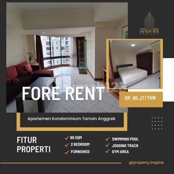Apartemen Kondominium Taman Anggrek 2BR - Rent Type: 2Br Size: 88 Sqm Rent Price: Rp. 85 jt /thn Condition: Furnished Facilities: * Jogging Track * lapangan tenis * lapangan basket * Swimming Pool Near to Mall: * Taman Anggrek Mall * Central Park Mall * Neo Soho Mall * Citraland Mall Near to School/Universities: * SMAK 1 BPK Penabur * Podomoro University * UKRIDA University * UNTAR University * Trisakti University * Binus University * etc