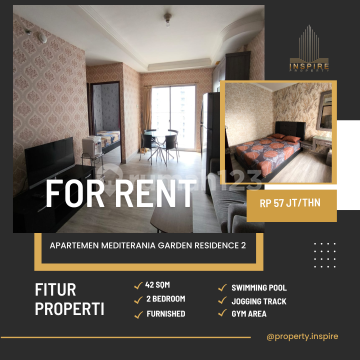 MEDITERANIA GARDEN RESIDENCE TYPE 2BR - Rent Type: 2Br Size: 42 Sqm Rent Price: Rp. 57 jt /thn Condition: Furnished Facilities: * Jogging Track * lapangan tenis * lapangan basket * Swimming Pool Near to Mall: * Taman Anggrek Mall * Central Park Mall * Neo Soho Mall * Citraland Mall Near to School/Universities: * SMAK 1 BPK Penabur * Podomoro University * UKRIDA University * UNTAR University * Trisakti University * Binus University * etc