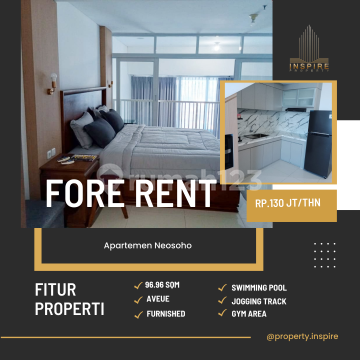 Apartemen Neo Soho Type Avenue - Rent! Type: Avenue Size: 96.96 Sqm Rent Price : Rp.130 jt/thn Condition: Furnished Facilities: * Jogging Track * GYM Area * Swimming Pool Indoor * Sauna * Gazebo * Children Playground Near to Mall: * Taman Anggrek Mall * Central Park Mall * Neo Soho Mall * Citraland Mall Near to School/Univerisities: * SMAK 1 BPK Penabur * Podomoro University * UKRIDA University * UNTAR University * Trisakti University * Binus University * etc