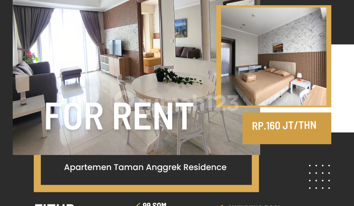 Apartemen Taman Anggrek residences 2 Br+ Rent Type: 2 Br+ Size : 99 Sqm Rent Price: 160 jt/thn Condition: furnished Facilities: * Jogging Track * GYM Area * Swimming Pool Near to Mall: * Taman Anggrek Mall * Central Park Mall * Neo Soho Mall * Citraland Mall