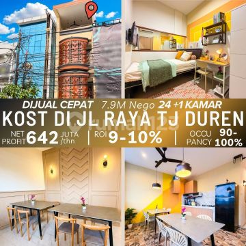 WTS DIJUAL Rumah Kost Tj Duren Eminence Open Harga 7,9 M (Nego) Kost baru renov total Occupancy 90 sampai 100% Cashflow sudah jalan 24 + 1 kamar full furnished LT 111 m2 LB 346 m2 4 lantai SHM IMB Hadap Barat Jalan raya lebar, 3 mobil Token listrik per kamar Lokasi super prime Selangkah ke Neo Soho, Central Park, Taman Anggrek Dekat Untar, Trisakti, Ukrida Net income ± Rp 53,5 jt per bulan ± Rp 642 jt per tahun ROI 8 sampai 10 persen