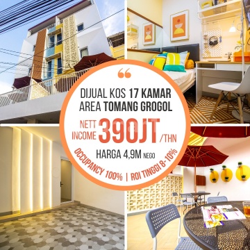 Kost Tomang View Residence (TVR) adalah Kost super Nyaman di area Strategis di Jakarta Barat yaitu Tomang Grogol. JARANG ADA.. Kost ANTI Pandemi di TOMANG GROGOL KOS BARU dan SUDAH FULL terisi 100% walau pandemi. KOST DG ROI TINGGI 8-10%/ Tahun Di TOMANG GROGOL TOTAL ada 17 + 1 KMR TIDUR Fully Furnished TOMANG VIEW RESIDENCE (TVR) Spesifikasi PropertI SHM + IMB LT: 66 m2 ( 4.5 x 14.5 m) LB: 264 m2 (5 Lantai) 17 Kamar + 1 Kmr Karyawan 17 Kmr Mandi Dalam dgn Water Heater + 1 Kmr Mandi Karyawan Hadap : Utara Lewat 2 Mobil HARGA : Rp. 4,9 M (NEGO) LOKASI SUPER STRATEGIS Hanya 4-7 menit ke : [Mall] Central Park, Taman Anggrek & Citra Land [Kampus] Untar, Trisakti & Timbul… dkt Kampus Trisakti, Untar, Mall CP, Taman Anggrek, NEO SOHO dan CitraLand HUB : Rini 081775xxxx