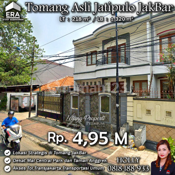 INFO UPDATE LISTING RUMAH CANTIK ASRI 2LT STRATEGIS TOMANG ASLI JATIPULO PALMERAH JAKBAR Alamat: Jl. Tomang Asli Kel. Jatipulo Kec. Palmerah JakBar Detail Properti: - Luas Tanah : 218 m² - Luas Bangunan : ± 320 m² Keunggulan Lokasi: Lokasi Strategis, Asri dan Nyaman Harga: Rp. 4,95 Miliar Harga BELUM Termasuk biaya Pengosongan dan Balik Nama. (Harga di atas belum termasuk BPHTB 5%, biaya lelang 2%, Pajak Pemerintah 1%, dan PBB jika ada) **Kenapa Memilih Kami?** Dengan pengalaman 12 tahun di bidang lelang, kami menyediakan solusi satu atap untuk semua transaksi properti Anda. Proses yang jelas dan bersih sehingga Anda bisa tenang hingga serah terima. Hubungi Kami untuk Info Lebih Lanjut: - Holly: 081818xxxx - Ferry: 0816116xxxxLelangProperti #PropertiIndonesia #InvestasiProperti #PropertyInvestment #RumahDijual #AgentProperti #JakartaRealEstate #JualBeliProperti #EraIndonesia #AgenPropertiTerpercaya #Investasi #RealEstateAuction #Jakartabarat #Rumahnyaman #RumahdijualJakartabarat #Palmerah #Rumahasri #Tomang #jatipulo