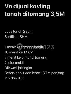 Tanah di Tomang. Dapatkan tanah yang nyaman ini, dijual menawarkan lingkungan fasilitas yang lengkap, cocok untuk Anda yang menginginkan hunian strategis. Spesifikasi Utama Properti: - Sertifikat: SHM - Sertifikat Hak Milik Terletak di Tomang, tanah ini memberikan kemudahan akses ke berbagai fasilitas menarik. Dengan harga Rp. 3.500.000.xxx, anda bisa memiliki hunian eksklusif yang sudah siap huni dan bersertifikat SHM - Sertifikat Hak Milik. Ambil kesempatan untuk menikmati pengalaman tinggal di kawasan Tomang yang nyaman ini! Kontak segera untuk informasi lebih lanjut!