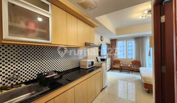 Disewakan Studio Apartemen Royal Mediterania Garden Residence luas 30m2 lantai rendah view pool. Harga 55jt/tahun. Ready 16 agustus 2025