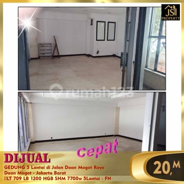 DIJUAL GEDUNG 5 Lantai di Jalan Daan Mogot Raya Daan Mogot - Jakarta Barat Lokasi bagus di pinggir jalan Raya Daan Mogot , ± 400 meter dari keluaran Toll Jorr , ± 20 menit ke Bandara International Soekarno Hatta, Lahan Parkir muat 14 mobil, Cocok untuk segala jenis usaha. Luas Tanah 709 m² Luas Bangunan ± 1.200 m² 5 Lantai Listrik 7700 Watt Air PAM Sertifikat ada 2 ( HGB & SHM ) Harga 20M Nego