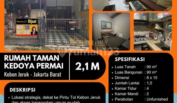 Rumah 1 lantai di Kedoya, Jakarta Barat. Dijual rumah di wilayah yang asri dengan pemandangan permukiman warga. Properti 1 lantai bergaya minimalis ini berada di lingkungan yang mudah dijangkau. Spesifikasinya adalah sebagai berikut: - Kamar Tidur: 4 - Kamar Mandi: 2 - Sertifikat: SHM - Sertifikat Hak Milik - Daya Listrik: 2200 W - Hadap: Selatan - Kondisi Perabotan: Unfurnished Tidak hanya itu, properti ini layak untuk anda dapatkan karena: - Bisa KPR. - Siap Huni. - Bebas Banjir. - Dekat Akses MRT. - Dekat Akses Transjakarta. - Dekat Pusat Perbelanjaan. - Dekat Sekolah Internasional. - Dekat Universitas. - Dekat Fasilitas Kesehatan. - Dekat Tempat Ibadah. Properti ini telah lengkap dengan fasilitas: - Wastafel. - Kitchen Set. - Keamanan 24 jam. - Akses Parkir. - Tempat Jemuran. - Jalur Telepon. - Lapangan Bola. - Lapangan Basket. Keberadaan rumah ini strategis, hanya selangkah menuju berbagai fasilitas utama dan menarik. Hanya Rp. 2.100.000.xxx anda bisa langsung dapatkan rumah premium di daerah Kedoya ini. Novie 081772xxxx Blessing Pro Metland