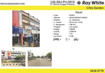 Kesempatan terbatas buat Anda dapatkan ruko strategis dengan return investasi tinggi di Daan Mogot, Jakarta Barat. Ruko ini menawarkan kelengkapan fasilitas serta memiliki nilai tepat yang siap untuk segera Anda miliki, utamanya bagi Anda yang mencari hunian di lokasi yang terjangkau. Kondisi properti ini bagus dengan detail properti sebagai berikut: - Kamar Mandi: 3 - Sertifikat: HGB - Hak Guna Bangunan - Daya Listrik: 3500 watt - Kondisi Perabotan: Unfurnished Tidak hanya itu, namun properti ini juga memiliki keunggulan sebagai berikut: - Bisa KPR. Lokasi Strategis terletak di Daan Mogot, properti ini memudahkan akses Anda ke fasilitas-fasilitas utama dan unggulan Harga yang sangat kompetitif yaitu, Rp. 3M, ruko ini siap menjadi milik Anda! Nikmati segala kemudahan dan berbagai keunggulan menarik saat properti berkualitas ini milik Anda. Hubungi segera dan dapatkan informasinya ataupun cek unit!