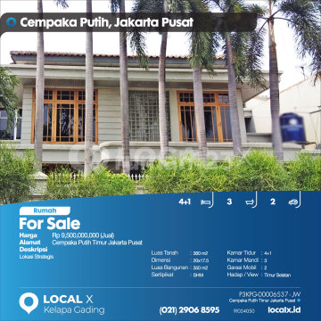 Lokasi Strategis For Sale - Jual Rumah Cempaka Putih Timur Jakarta Pusat Harga. Rp 950000xxxxJual) Deskripsi Properti. Lokasi Strategis Luas Tanah. 360 m2 Dimensi. 20x17.5 Luas Bangunan. 350 m2 Sertipikat. SHM Kamar Tidur. 4+1 Kamar Mandi. 3 Garasi Mobil. 2 Hadap / View. Timur Selatan LOCAL X Kelapa Gading ******** ⓪②① ②⑨⓪⑥ ⑧⑤⑨⑤ P3KPG-0000xxxx-JW-J