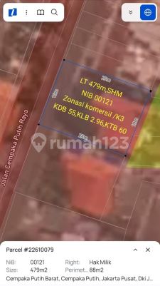*Dijual* Rumah hitung tanah. Jl. Cempaka putih barat raya. Lt 479 Dimensi 19x25 Hadap barat laut Zonasi komersil/k3 Shm Harga : 11M nego Ev