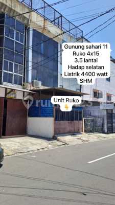 Ruko Gunung sahari 2 jakarta pusat Ruko Gunung sahari 2 jakarta pusat Luas tanah 4x15 = 60 m² Luas bangunan 145 m² 3.5 lantai Kamar tidir 3 Kamar mandi 2 Hadap selatan Listrik 4400 watt Harga Jual 2,4 Milyar ( nego )