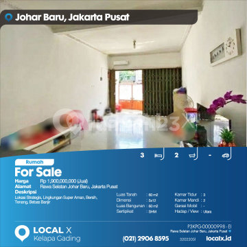 Lokasi Strategis, Lingkungan Super Aman, Bersih, Tenang, Bebas Banjir For Sale - Jual Rumah Rawa Selatan Johar Baru, Jakarta Pusat Harga. Rp 190000xxxxJual) Deskripsi Properti. Lokasi Strategis, Lingkungan Super Aman, Bersih, Tenang, Bebas Banjir Luas Tanah. 60 m2 Dimensi. 5x12 Luas Bangunan. 60 m2 Sertipikat. SHM Kamar Tidur. 3 Kamar Mandi. 2 Garasi Mobil. - Hadap / View. Utara LOCAL X Kelapa Gading ******** ⓪②① ②⑨⓪⑥ ⑧⑤⑨⑤ P3KPG-0000xxxx-EI-J