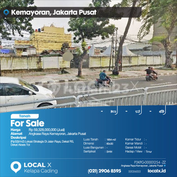 (Rp32jt/m2) Lokasi Strategis Di Jalan Raya, Dekat RS, Dekat Akses Tol For Sale - Jual Tanah Angkasa Raya Kemayoran, Jakarta Pusat Harga. Rp 59,328,000,000 (Jual) Deskripsi Properti. (Rp32jt/m2) Lokasi Strategis Di Jalan Raya, Dekat RS, Dekat Akses Tol Luas Tanah. 1854 m2 Dimensi. 60x30 Luas Bangunan. 1854 m2 Sertipikat. SHM Kamar Tidur. - Kamar Mandi. - Garasi Mobil. - Hadap / View. Timur LOCAL X Kelapa Gading ******** ⓪②① ②⑨⓪⑥ ⑧⑤⑨⑤ P3KPG-0000xxxx-ZZ-J