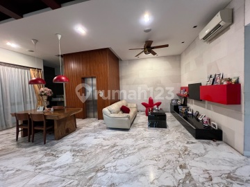 Townhouse springhill blk D7 luas tanah 189 m2 luas bangunan 363 m2 4 lantai kondisi rumah rapi siap huni kondisi furnish kondisi bangunan sudah di tambahkan ada lift, water heater, wall projector di kamar utama, lantai parquet di kamar utama, wifi tiap lantai, pabx 6 kamar tidur hgb di atas hpl harga Rp 8.2 milyar