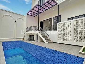 RUMAH LT 370 m2 LB 800 m2 KT 10 KM 7 3,5 LANTAI SURAT SHM HADAP SELATAN PLN 11000 W Gate otomatis lantai Granit Pintu Jati Rooftop Kolam Renang HARGA : 30 M CONTACT : EVVY JUSUP DB REAL ESTATE INDONESA Deliver The Best Property For You