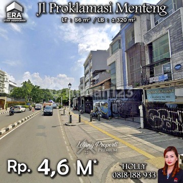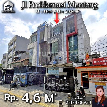INFO LISTING - L01 RUKO 4 LT KONDISI BAGUS LOKASI STRATEGIS JL PROKLAMASI MENTENG JAKARTA PUSAT Alamat: Jl. Proklamasi Kel. Pegangsaan Kec. Menteng JakPus Detail Properti: - Luas Tanah : 86 m² - Luas Bangunan : ± 320 m² Keunggulan Lokasi: - Lokasi Strategis Harga: Rp. 4,6 M (CASH ONLY) Harga SUDAH Termasuk Pengosongan dan Balik Nama. (Harga di atas belum termasuk BPHTB 5%, biaya lelang 2%, Pajak Pemerintah 1%, dan PBB jika ada) **Kenapa Memilih Kami?** Dengan pengalaman 12 tahun di bidang lelang, kami menyediakan solusi satu atap untuk semua transaksi properti Anda. Proses yang jelas dan bersih sehingga Anda bisa tenang hingga serah terima. Hubungi Kami untuk Info Lebih Lanjut: - Holly: 081818xxxx - Ferry: 0816116xxxxPegangsaan #RukodijualMenteng #Rukoijual #JakartaPusat #PondokCabe #Menteng #Proklamasi