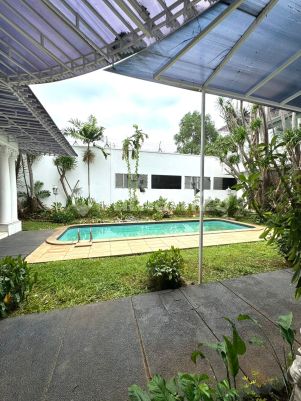 House for Rent Lt 1050sqm Lb 1500sqm 2 floors Bedroom 5 + 3 Bathroom 6+ 1 Powder room Paviliun - 2 room Wet & dry Kitchen Pool Garden Living room Dining room Garage 2 cars Carport 8 cars UnFurnished 1 gate Price 12.500$/ mo ( nego )