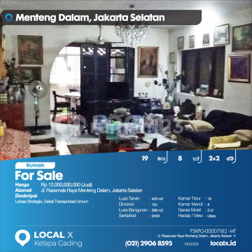 Lokasi Strategis, Dekat Transportasi Umum For Sale - Jual Rumah Rasamala Raya Menteng Dalam, Jakarta Selatan Harga. Rp 1200000xxxxJual) Deskripsi Properti. Lokasi Strategis, Dekat Transportasi Umum Luas Tanah. 420 m2 Dimensi. 12x Luas Bangunan. 288 m2 Sertipikat. SHM Kamar Tidur. 19 Kamar Mandi. 8 Garasi Mobil. 2+2 Hadap / View. Utara LOCAL X Kelapa Gading ******** ⓪②① ②⑨⓪⑥ ⑧⑤⑨⑤ Whatsapp/Call. Mariana - ⓪⑧①⑥④⑧③⓪⑤⑤⓪ P3KPG-0000xxxx-MT-J