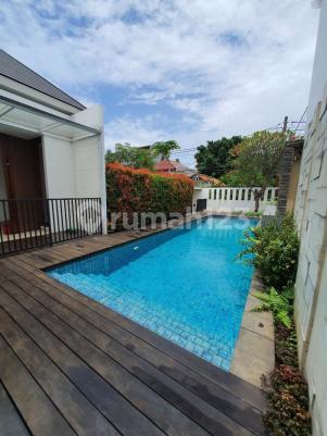 House For Rent LT. 664/600 m2 2 lantai Kamar Tidur 4+3 Kamar mandi 3+2 1 ruang belajar/perpustakaan Listrik 33000 kva Semi furnish Kolam renang taman, AC USD 6000/bulan min.24 bulan.