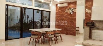 DISEWAKAN Luas Tanah 340 m2 Luas bangungan 440m2 ( 2 lantai) Lintrik 7700 Air PAM 4 kamar tidur 4 kamar mandi (1 tersedia bathub) Ruang keluarga 2 1 ruang makan 2 dapur bersih 1 dapur belakang dengan dish washer Kolam renang Ruang security dengan CCTV 1 garasi +3 car ports 1 kamar ART + kamar mandi 1 gudang area cuci dengan mesin cuci harga sewa 700juta/thn Minimum 2 thn sewa