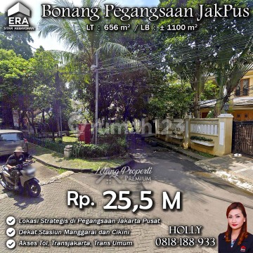INFO UPDATE LISTING RUMAH MEWAH ASRI NYAMAN LOKASI PREMIUM BONANG PEGANGSAAN JAKARTA PUSAT Alamat: Jl. Bonang Kel. Pegangsaan Kec. Menteng Jakarta Pusat Detail Properti: - Luas Tanah : 656 m² - Luas Bangunan : ± 1100 m² Keunggulan Lokasi: - Lokasi Strategis, Nyaman dan Tenang Harga: Rp. 25,5 M (CASH ONLY) Harga BELUM Termasuk biaya Pengosongan dan Balik Nama. (Harga di atas belum termasuk BPHTB 5%, biaya lelang 2%, Pajak Pemerintah 1%, dan PBB jika ada) **Kenapa Memilih Kami?** Dengan pengalaman 12 tahun di bidang lelang, kami menyediakan solusi satu atap untuk semua transaksi properti Anda. Proses yang jelas dan bersih sehingga Anda bisa tenang hingga serah terima. Hubungi Kami untuk Info Lebih Lanjut: - Holly: 081818xxxx - Ferry: 0816116xxxxLelangProperti #PropertiIndonesia #InvestasiProperti #PropertyInvestment #RumahDijual #AgentProperti #JakartaRealEstate #JualBeliProperti #EraIndonesia #AgenPropertiTerpercaya #Investasi #RealEstateAuction #JakartaPusat #RumahMewah #RumahdijualJakartaPusat #Rumahasri #Manggarai #Bonang #Rumahminimalis #Pegangsaan #Cikini #Menteng