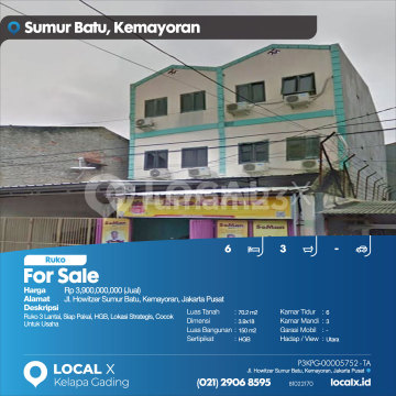Ruko 3 Lantai, Siap Pakai, HGB, Lokasi Strategis, Cocok Untuk Usaha For Sale - Jual Ruko Howitzer Sumur Batu, Kemayoran, Jakarta Pusat Harga. Rp 3,900,000,000 (Jual) Deskripsi Properti. Ruko 3 Lantai, Siap Pakai, HGB, Lokasi Strategis, Cocok Untuk Usaha Luas Tanah. 70.2 m2 Dimensi. 3.9x18 Luas Bangunan. 150 m2 Sertipikat. HGB Kamar Tidur. 6 Kamar Mandi. 3 Garasi Mobil. - Hadap / View. Utara LOCAL X Kelapa Gading ******** ⓪②① ②⑨⓪⑥ ⑧⑤⑨⑤ P3KPG-0000xxxx-TA-J