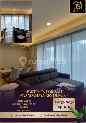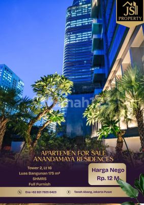 DIJUAL APARTEMEN LUXURY Tower 2 di Anandamaya Residences Sudirman - Jakarta Pusat Luas Bangunan 175 m² Lantai 16 Kamar Tidur 3 Kamar Mandi 2 Full Furnish Listrik 3.500 Watt Air WTP Sertifikat SHMRS Hal yang Menarik : - lokasinya yang sangat strategis di pusat CBD Sudirman - Desain mewah dan modern dengan konsep eco-resort - Fasilitas lengkap seperti kolam renang, gym, jogging track, dan taman. - Sky garden di lantai atas - Akses langsung ke Menara Astra Harga 12 M Nego