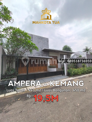 DIJUAL !! AMPERA KEMANG JAKARTA SELATAN RUMAH CANTIK SIAP HUNI. BERADA DALAM KOMPLEK TENANG. 1). POSISI HOOK : Luas Tanah : 443m2 Luas Bangunan : 450m2 Bangunan 2 Lantai SHM Hadap Utara - Barat Harga *19,5M* (NEGO). 2). POSISI TENGAH : Luas Tanah : 389m2 Luas Bangunan : 450m2 Bangunan 2 Lantai SHM Hadap Utara Harga *18M* (NEGO) Kamar Tidur : 4+2 Kamar Mandi : 3+1 Garasi : 2 Mobil Carport : 2 Mobil Powder Room : 1 Dapur Bersih : 1 Dapur Kotor : 1 Gudang : 3 Taman Depan & Dalam Akses Jalan Lebar 2 Mobil. Tidak Banjir. Hubungi : Mahkota Tua 08961737xxxx