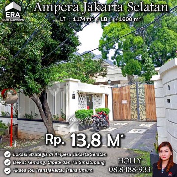 INFO UPDATE LISTING - L09 RUMAH MEWAH ASRI NYAMAN STRATEGIS AMPERA PASAR MINGGU JAKARTA SELATAN Alamat: Jl. Ampera Kel. Ragunan Kec. Pasar Minggu JakSel Detail Properti: - Luas Tanah : 1174 m² - Luas Bangunan : ± 1600 m² Keunggulan Lokasi: - Lokasi Premium dan Nyaman Harga: Rp. 13,8 M (CASH ONLY) Harga SUDAH Termasuk biaya Pengosongan dan Balik Nama. (Harga di atas belum termasuk BPHTB 5%, biaya lelang 2%, Pajak Pemerintah 1%, dan PBB jika ada) **Kenapa Memilih Kami?** Dengan pengalaman 12 tahun di bidang lelang, kami menyediakan solusi satu atap untuk semua transaksi properti Anda. Proses yang jelas dan bersih sehingga Anda bisa tenang hingga serah terima. Hubungi Kami untuk Info Lebih Lanjut: - Holly: 081818xxxx - Ferry: 0816116xxxxLelangProperti #PropertiIndonesia #InvestasiProperti #PropertyInvestment #RumahDijual #AgentProperti #JakartaRealEstate #JualBeliProperti #EraIndonesia #AgenPropertiTerpercaya #Investasi #RealEstateAuction #JakartaSelatan #RumahMewah #RumahdijualJakartaSelatan #Rumahasri #Rumahminimalis #TBSimatupang #Cipete #Kemang #Ragunan #PasarMinggu #Ampera #PsMinggu