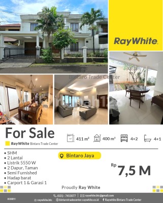 Dijual Rumah Besar Siap Huni Baru Renovasi di Bintaro Pesanggrahan Spesifikasi Luas tanah 411 m2 Luas bangunan 400 m2 Kamar tidur 4+2 Kamar mandi 4+1 2 lantai Listrik 5500 Va semi furnished, Renov 2025 SHM Harga 7,5 M nego Lokasi strategis di Pesanggrahan Bintaro, dekat dengan fasilitas umum seperti : - Polsek Pesanggrahan - Gerbang Tol Veteran 2 - Pasar Bintaro - RSUD Pesanggrahan - RS Dr. Suyoto dsb *(bby)