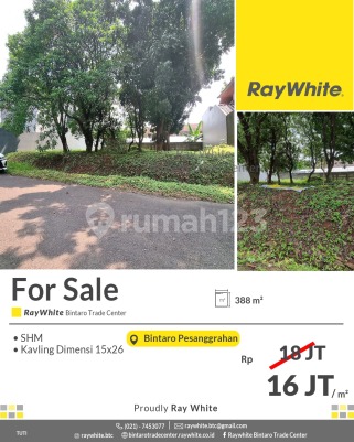 HOT SALE! Kavling MURAH Siap Bangun di Perumahan Bintaro Pesanggrahan Spesifikasi Luas tanah 388 m2 Dimensi 15x26 SHM Lokasi strategis di Bintaro Pesanggrahan dekat dengan fasilitas umum seperti : - Pusat Bisnis Bintaro - Polsek pesanggrahan - RSUD Pesanggrahan - Gerbang Tol Veteran 2 - RS Dr. Suyoto - Superindo Bintaro - Stasiun Pondok Ranji Dsb Harga Rp16 juta/m2 *(tti)
