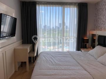 Condition : Fully furnished Facility : - 5-star facilities - Waterpark - Integrated with Mall Kota Kasablanka - Fitness - Jogging track - Swimming pool - Carrefour supermarket - Children playground - 24-hours security - Access card to the unit - Video call - Receptionist - Basement parking card. Additional Info : - Located in the Central Business District (Kuningan and Sudirman). - Superblock concept (Apartment, Mall + Waterpark and Office Tower). - Direct access to Kota Kasablanka Shopping Mall from the Apartment (private access card)