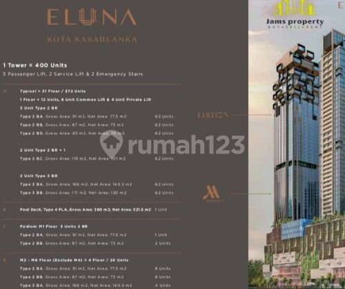 PAKUWON GROUP tbk ( Casa Grande phase 3 ) INTRODUCING THE NEW TOWER ELORA & ELUNA (Phase3) KOTA KASABLANKA Masterpiece dr Pakuwon Group. konsep dan Investasi hunian mewah yang terjangkau di kelas nya Posisi letak nya HEART OF CITY JAKARTA Draft Desain sudah Terintegrasi/Existing to mall kokas 1 & kokas 2,maupun 3 tower office penunjang Pakuwon Tower Prudential Tower 88 Office Tower Marriott Hotel (Five Star) Edition Hotel (Six Star) Dengan Developer Terpercaya Menciptakan Ketenangan Berinvestasi/Tinggal Yang Aman Bersama Pakuwon Group Development. Ordering and seizing now ! ELORA TOWER HIGH END (Only 221 Units ) ELUNA TOWER MID UP (Only 422 Units ) Be Priority lucky person Selling Price : Start from 4,3 Milliar Cara Bayar: Hard Cash/ KPA/ Cash Bertahap Promo cara bayar Dp 20% di cicil 12x & extra disc subsidi bunga selama 2th ( Khusus untk KPA )