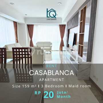 FOR RENT Apartment Casablanca Jakarta Selatan Do you need 3 bedroom apartment for a family with a spacious unit in the Kuningan area? Only in Casablanca Apartment we offered all rooms fit with king size bed 3 Bedroom 2 Bathroom Size 159 m2 Fully Furnished Balcony High floor Apartment facilities: 2 Swimming Pool for Adult, Sand beach Pool for Kids, Tennis Court, Indoor and outdoor children playground, Jogging Track, Visitors Parking Lot, BBQ Area, Function Room, Gymnasium, Squash Court, Mini Market, Basketball Court, Sauna & Steam, Whirlpool, Table Tennis, Changing room, Dry Cleaning & Laundry Services, Reserved Parking Lot, CCTV in Common Area, Security 24 Hours. Strategic location, near to Central Business District (CBD) area (Kuningan, Sudirman, Thamrin, Gatot Subroto), Embassy (Australia, Singapore, India, Dutch, etc), MMC Hospital, Mall Kota Kasablanka, Grand Indonesia, Culinary and entertainment centre (Tebet, Menteng & Kemang area). Rental Price: Rp. 20.000.000 /month Minimum rent: 12 months Jamie 0811807xxxx