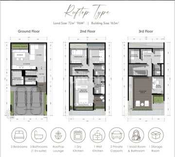 - LT/LB = 72/165 m2 - 2,5 tingkat + roof top - Style modern - tropical - KT = 3+1, KM = 2+1 - Luxurious finishing (sanitair Grohe, granito tile) - Garasi (carport) untuk 2 mobil - Hadap Timur - 1 gate system - Lingkungan tenang dan asri - 5 menit ke tol Brigif - 5 menit ke Fortuna Swalayan - 2 menit ke Naga Swalayan Serah terima Juni 2026