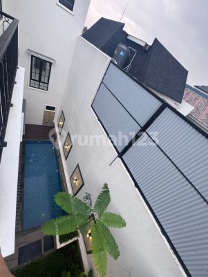 RUMAH MEWAH 4 LANTAI DI BISMA AGUNG CIGANJUR JAKARTA SELATAN American Classic Modern | FULL FASILITAS | BONUS MEWAH! Harga: Rp 5,4 Miliar SPESIFIKASI UTAMA: LT 210 m² (9 x 23,3 m) | LB 362 m² + Loteng 10 m² 6 Kamar Tidur + 4 Kamar Mandi Kolam Renang 3x7 m dengan sinar pagi dari Timur Backyard Garden & Attic Room Ruang Keluarga, Ruang Makan, Pantry, Laundry Room Full Balkon & Carport untuk 3 Mobil + Garasi 1 Mobil Parkir hingga 6 Mobil! Tanpa ganggu jalan kompleks LAYOUT RUMAH: 5 Bedroom + 1 Kamar ART 6 Bathroom + 1 KM ART Kitchen + Pantry Laundry Room Swimming Pool Taman Belakang Loteng/Gudang (Tinggi 2 meter) Carport + Garasi + Parkir Tambahan PLN 5500 VA | Toren 1000 L + Pompa Pendorong BONUS SPESIAL UNTUK PEMILIK BARU: Kitchen Set + Kompor Listrik TEKA (8,8 juta) Cooker Hood & Kitchen Sink TEKA (Total 10 juta) 3 AC + 2 Water Heater Wall Charger EV Car